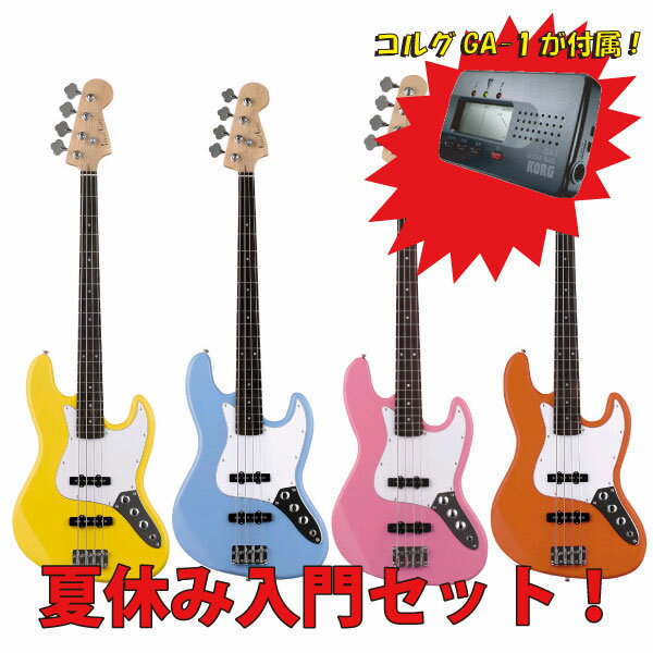 楽器初心者入門ベースセット【KORG GA-1付属】【PhotoGenic】ジャズベースタイプ JB240 パステルカラー YW,UBL,PK,OR 夏休み入門セット